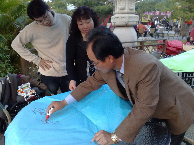 我跟弟弟抓著天燈的四個角把天燈拉高(他太高了我還要墊腳尖= =)